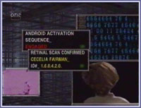 Back at the Lab, Keeler has modified the company sensor net to search for elector-magnetic emissions, which should be leaking from Mac27's damaged circuits. Lots of 'hot' spots show up. NASH queries the number of lost droids, and Keeler says these emissions could be given out by; microwave transmitters, or electric power generators. Mac27 then gets her to reattach some circuits in his right arm. While she works on the arm, she talks about the scenes accessed from his memory when he fled the laboratory. She tells him she 'saw' him kill two people to get away, and asks why he did that. He replies that he had to in order to escape. She says he must have acted on impulse, which is an emotional response. He insists there must be a rational explanation as he has no emotions. He just before he had the urge to escape he felt something in his neural processors - therefore there must be an error in his programming. She tells him she heard a rumour once that something like this happened in an Innobotics virtual reality test program. He confirms that the holographic female became emotionally involved with her owner. She asks him to show her this memory, he says they haven't time, but she presses the point by saying that it might help them understand what happened to him.